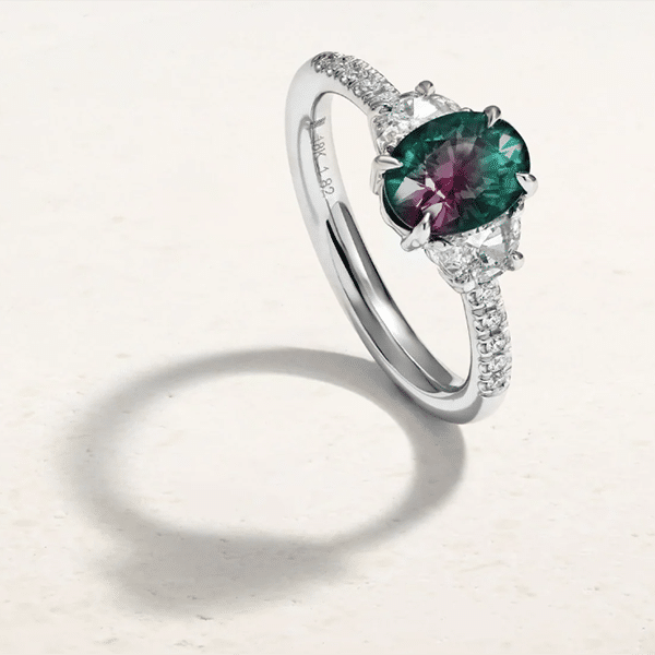 Few gems are as magical as alexandrite, famous for its color-changing ability. By daylight, it shines green; under incandescent light, it transforms to a rich red or purple. This dramatic shift feels like a trick of the eye—a gemstone illusion that embodies the magic of October.Fluorescent Diamonds